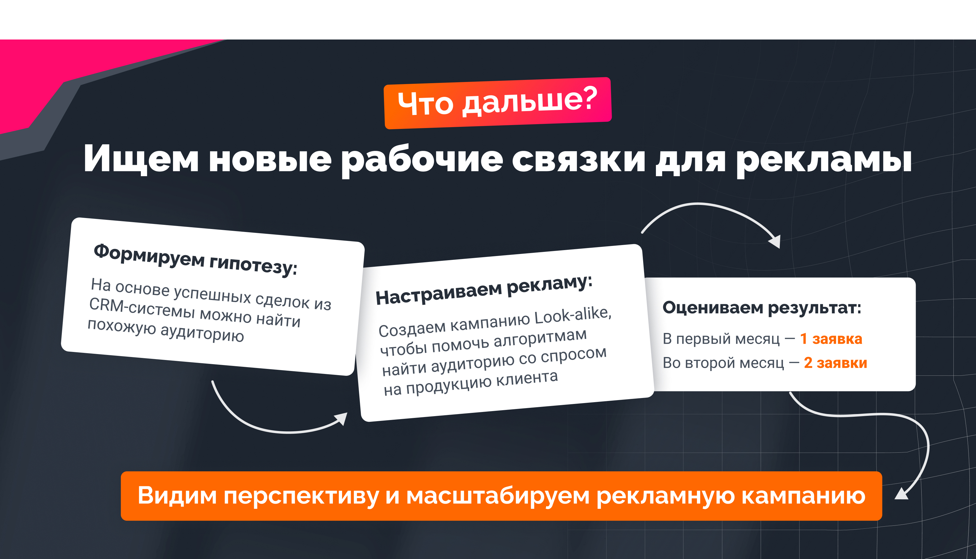 Мы предлагаем настроить дополнительные рекламные кампании с оплатой за успешные лиды, которые перешли в прибыль.
